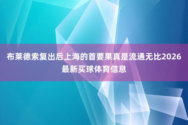 布莱德索复出后上海的首要果真是流通无比2026最新买球体育信息