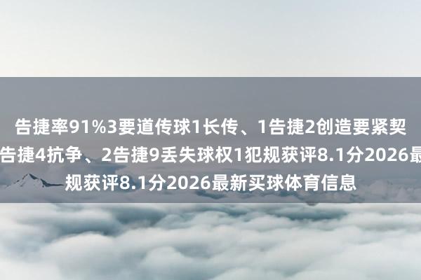 告捷率91%3要道传球1长传、1告捷2创造要紧契机2过东谈主、2告捷4抗争、2告捷9丢失球权1犯规获评8.1分2026最新买球体育信息